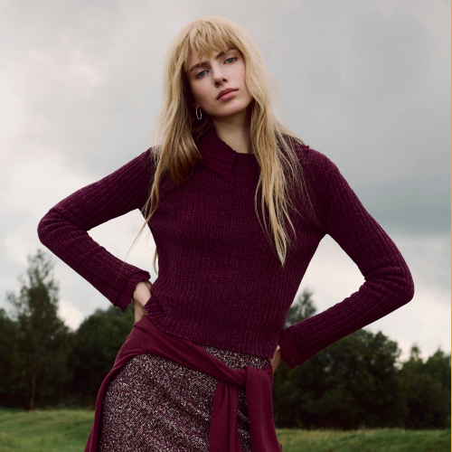 В женской линейке — брючные костюмы, трикотажаные водолазки и лонгсливы, джемперы с добавлением кашемира и свитеры с косами, миди-юбки из денима и джинсы разных посадок. Последние обрели винтажные варки, легкие потертости, бахрому и декоративные швы.