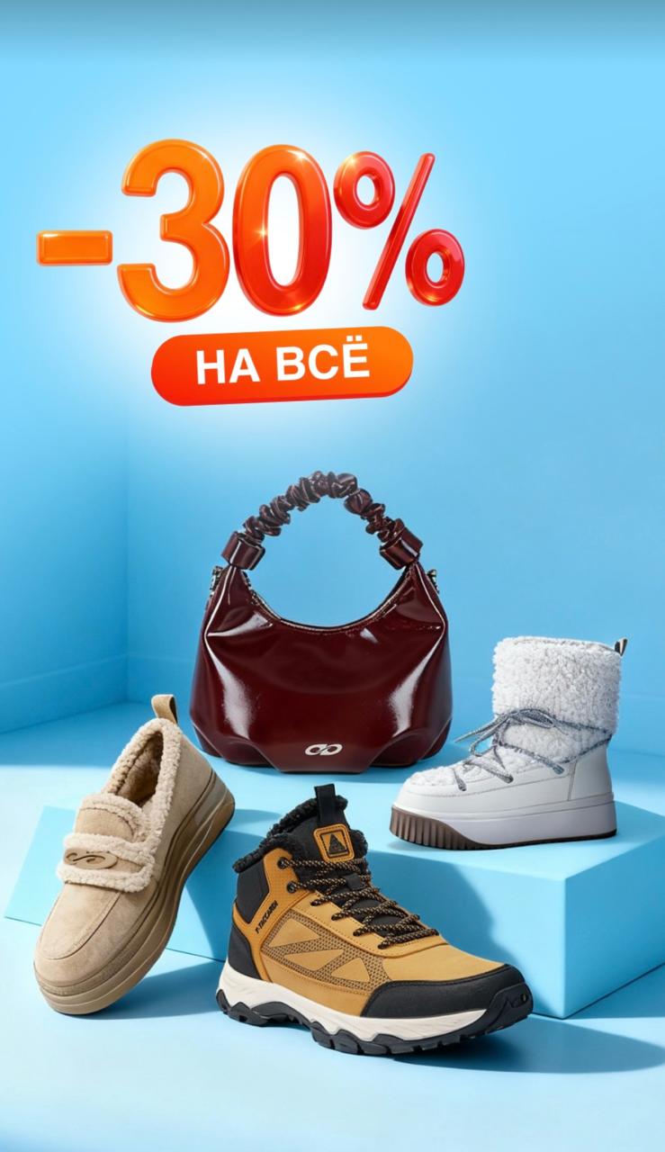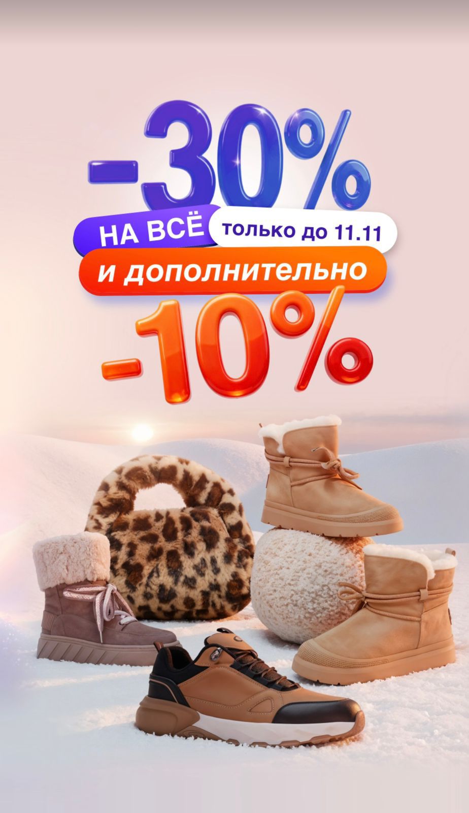 * Скидка предоставляется до -50% от первоначальной розничной цены товаров и распространяется на отдельные категории обуви. Акция не действует на товары с жёлтыми ценниками, товары торговой марки Rieker, аксессуары для обуви, обувную косметику, косметические средства, чулочно-носочные изделия, пакеты, подарочные карты.